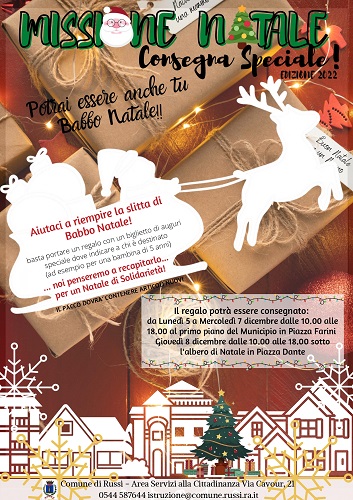 RUSSI (RA) – Questo sarà il terzo anno nel quale l’Amministrazione comunale di Russi organizza l’iniziativa di solidarietà “Missione natale: consegna speciale!”.