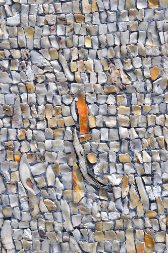 Marco De Luca è probabilmente il frutto più maturo e consapevole di questo percorso accidentato e seducente, dove consapevolezza del materiale e dimensione progettuale convivono e si integrano per generare immagini astratte dove la luce degli smalti ammaestra le zone umbratili e opache dei marmi. Dove le suggestioni di uno spazio ricreato plasticamente instaurano un dialogo con l’architettura. Sculture di luce che si generano su forme plastiche originate da una passione quasi “filologica” nei confronti della ricchezza di una tradizione che ha nei brani ravennati una delle sue culle; una luce che si incarna in virtù della scelta e della selezione dei materiali, del taglio delle tessere e dei loro andamenti.