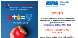 Sabato 11 giugno alle 18, premiazioni ai donatori e celebrazione della Giornata Mondiale del donatore di sangue presso il Centro Sociale Culturale Porta Nova...