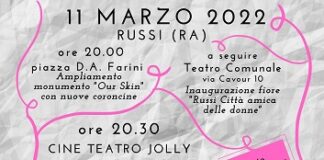 Iniziative in occasione della festa della donna: venerdì 11 marzo, in piazza Farini a Russi ampliamento monumento con nuove coroncine, di fronte al Teatro...