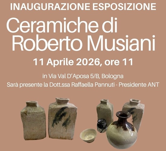 La mostra “Ceramiche di Roberto Musiani”, voluta e organizzata dalle volontarie e dai volontari dei Charity Point di Val D’Aposa e San Lazzaro, inaugura sabato 11 aprile alle ore 11 alla presenza di Raffaella Pannuti, Presidente ANT.