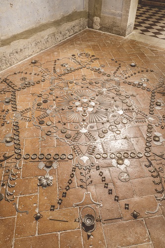 Foto: Sabrina Mezzaqui, Mandala, 2019 – Elementi metallici a pavimento, 300cm circa diametro_ph Ela Bialkowska, OKNO Studio_Courtesy the artist & GALLERIA CONTINUA