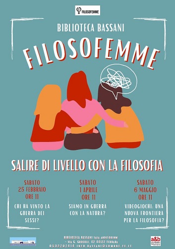 FERRARA – È in programma per sabato 1 aprile 2023 alle 11 il secondo dei tre incontri con le ‘Filosofemme’, per il ciclo ‘Salire di livello con la filosofia’ alla biblioteca comunale Bassani di via Grosoli 42 (zona Barco, Ferrara). Tema dell’appuntamento sarà: ‘Siamo in guerra con la natura?‘.