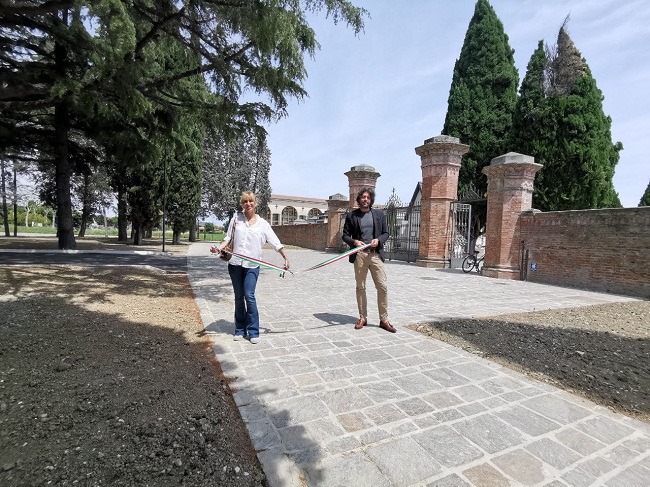 SAVIGNANO SUL RUBICONE (FC) – Sono terminati i lavori di riqualificazione esterna del cimitero centrale di Savignano sul Rubicone. Ieri mattina il Sindaco Filippo Giovannini e l’Assessore ai Lavori pubblici Stefania Morara hanno tagliato il nastro per inaugurare le opere che hanno interessato la riorganizzazione dei percorsi ciclopedonali e delle aree di sosta limitrofe ai due ingressi del cimitero centrale.