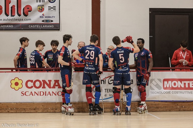 SCANDIANO (RE) – Secondo stop consecutivo per il Roller Hockey Scandiano nel Girone A del Campionato di Serie A2. Domenica scorsa si è registrata la sconfitta per 4-0 sul campo del Sandrigo, però non pregiudicando la seconda posizione e la distanza dal primo posto, rimasto ad un punto. La concomitante sconfitta dell’Azzurra Novara ha mantenuto bloccata la lotta per la promozione, ma si è inserito ora anche il Thiene, ora a 21 punti come i reggiani. Alla ripresa del Campionato per le ultime 7 gare il sei di Aprile, è in programma l’appuntamento casalingo al PalaRegnani contro il Montecchio Precalcino. Momento di pausa dall’hockey giocato ma una pausa di un paio di settimane per ricaricare le batterie per ricominciare ancora meglio ad Aprile quando ci sarà il rush finale.