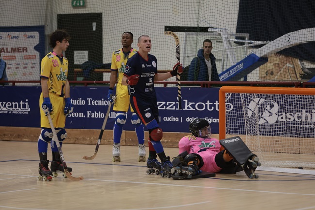 SCANDIANO (RE) – Sconfitta in rimonta per Scandiano. Al PalaRegnani, nella 7^giornata di Coppa Italia Serie A2, il Centro Palmer Roller Hockey Scandiano esce battuto per 1-2 dalla sfida con l’Amatori Modena: al vantaggio rossoblu firmato da Deinite risponde la doppietta di Pochettino.