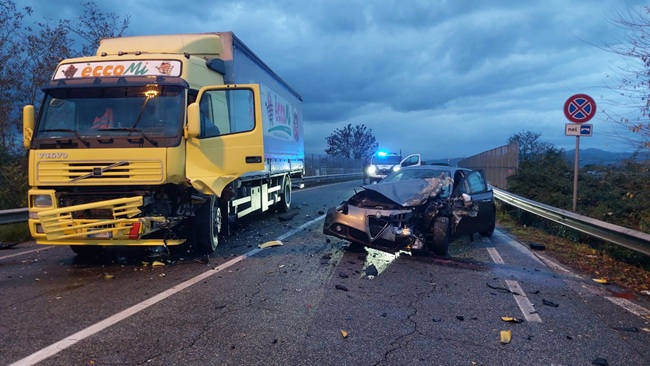 L’incidente ha coinvolto due veicoli: un autoarticolato Volvo condotto da un uomo di 58 anni (illeso) e un’autovettura Alfa Romeo Giulietta targata condotta da un cesenate di 26 anni il quale, a seguito di una perdita di controllo con conseguente invasione di corsia, è stato valutato sul posto dal personale sanitario del 118.