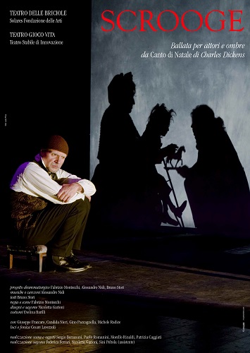 Lo “Scrooge” di Teatro Gioco Vita e Teatro delle Bricole è una sorta di musical: teatro d’attore, teatro d’ombre, musica e canzoni interagiscono sulla scena per raccontare ai ragazzi, ma non solo, la storia di Scrooge, avaro e misantropo riccone nato dalla fantasia di Dickens.