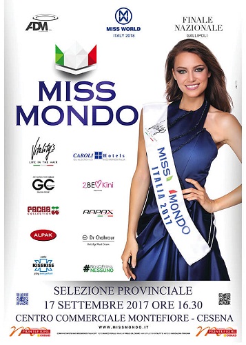 CESENA – Domenica 17 settembre, alle ore 16.30, al Centro Montefiore – Via Leopoldo Lucchi, n. 335, Cesena (FC) si terranno le selezioni provinciali del prestigioso concorso di bellezza Miss Mondo Italia.