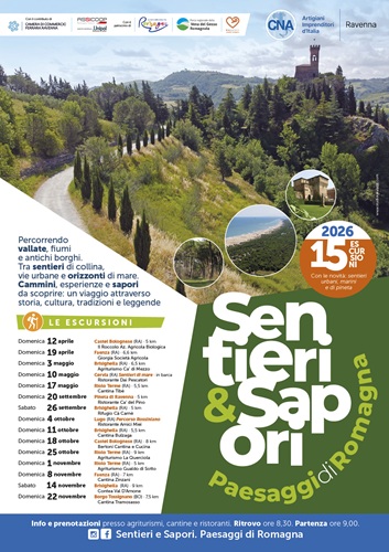 “Tre nuovi contesti, tre nuovi linguaggi, un’unica coerenza di fondo: muoversi in sicurezza accompagnati da guide esperte GAE, mangiare con consapevolezza, scoprire gli artigiani locali, stare insieme con piacere. Sentieri e Sapori 2026, nel processo di crescita, a partire da quest’anno, metterà a disposizione anche i pernotti, rendendo il progetto anche un prodotto turistico al servizio del territorio e delle Istituzioni” commenta Nevio Salimbeni – Responsabile CNA Turismo Ravenna – “per trasformare ogni passeggiata in un piccolo viaggio”.