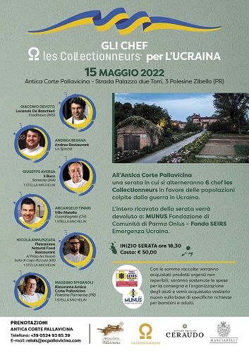 Domenica 15 maggio, gli chef di Les Collectionneurs insieme all’Antica Corte Pallavicina di Polesine Parmense (PR), per aiutare la popolazione Ucraina