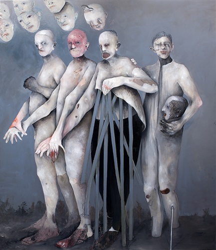 La personale, curata da Cesare Biasini Selvaggi con Francesca Baboni e Stefano Taddei, raccoglie un’ampia selezione di dipinti, di grandi dimensioni e di recente produzione. Una pittura figurativa visionaria che si fonda su composizioni fantastiche quanto allucinate, scene inquietanti, paesaggi incendiati da venature crudeli e qualche pennellata di mélo, tra onirico e mostruoso, delizia e oscenità.