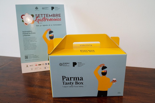 Per tutto il mese di settembre, i turisti in arrivo a Parma, Città Creativa UNESCO delle Gastronomia e Capitale Italiana della Cultura 2020+21, riceveranno in omaggio una “Tasty Box – I Sapori della Food Valley”, con tutti i prodotti simbolo della Food Valley parmense. Per ottenerla è sufficiente soggiornare in una delle strutture ricettive della città, per un periodo che comprenda almeno la notte del sabato.