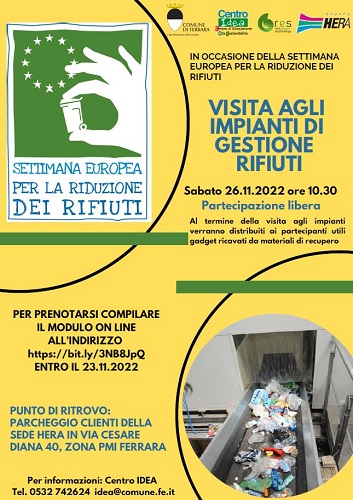 FERRARA – In occasione della Settimana Europea per la Riduzione dei Rifiuti (SERR), il Comune di Ferrara con il suo Centro di Educazione alla Sostenibilità IDEA, in collaborazione con HERA, organizza una visita guidata agli impianti di HERAmbiente.