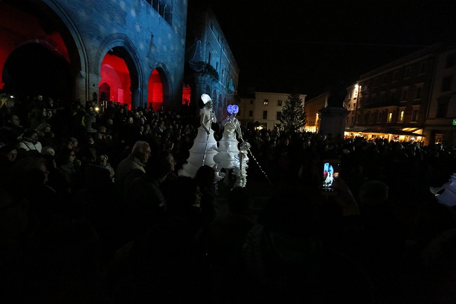 RIMINI – Sono stati tanti i riminesi che hanno seguito oggi in piazza Cavour lo spettacolo per l’accensione delle luminarie nella città di Rimini e l’inaugurazione dell’Opera di Natale, il progetto coordinato e diffuso di scenografie ed eventi natalizi che riguardano i ‘luoghi del fuori’ (Piazza Cavour, Castel Sismondo, Piazza Malatesta) e i ‘luoghi del dentro’, mediante l’apertura di spazi interni comunali come Foyer del teatro, Far, Castello, Urp, Bebè point, Corte della Biblioteca Malatestiana, che si animano di funzioni.