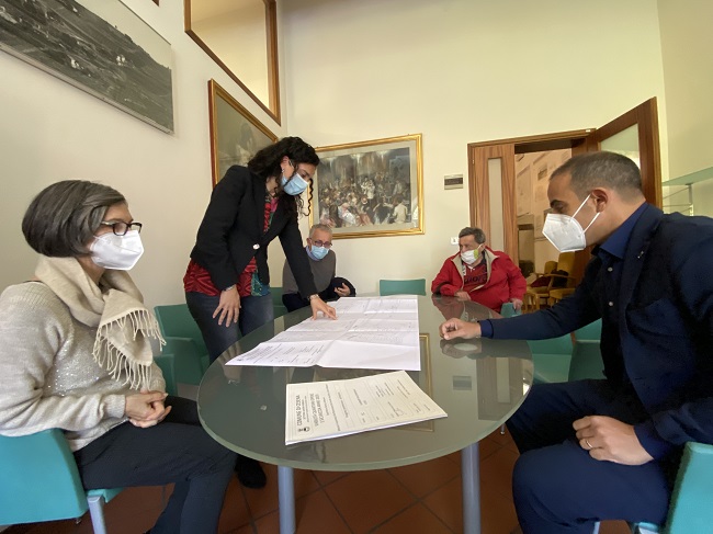 Nella foto gli Assessori Christian Castorri e Francesca Lucchi con la Presidente del Quartiere Centro urbano Dina Baldacci e i residenti Luciano Maldini e Maurizio Valbonetti