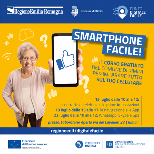 RIMINI – Per tutti coloro che hanno poca dimestichezza con gli strumenti digitali è in partenza un breve corso di 6 ore sull’utilizzo dello smartphone. Un’ottima opportunità, svolta in forma di laboratorio pratico, che aiuterà i partecipanti ad acquisire le competenze necessarie per utilizzare in autonomia e in sicurezza il proprio dispositivo.Anche questo corso, come tutte le attività del progetto “Digitale Facile”, ha lo scopo di promuovere l’inclusione digitale e consentire ai cittadini, che sono più in difficoltà per l’uso delle nuove tecnologie, di sfruttare a pieno tutti i vantaggi dei servizi online offerti dalla Pubblica Amministrazione.
