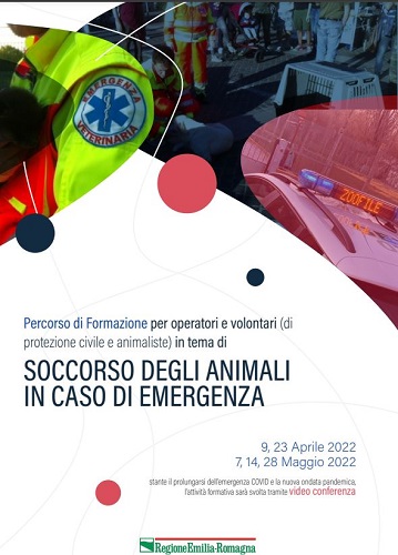 FERRARA – “Soccorso degli animali in caso di emergenza” è il tema del percorso di formazione per operatori e volontari (di protezione civile e animaliste) promosso dalla Regione Emilia Romagna (Servizio Prevenzione collettiva e Sanità Pubblica) che si terrà in modalità videoconferenza su piattaforma Zoom il 9 e 23 aprile e il 7, 14, 28 maggio 2022.