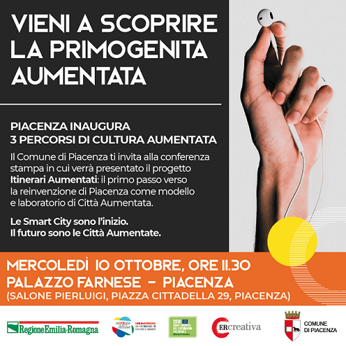 PIACENZA – Nella settimana dedicata alla valorizzazione del patrimonio di culture e umanità della Regione Emilia Romagna, nell’ambito del programma “Energie Diffuse”, Piacenza inaugura mercoledì 10 ottobre alle 11.30, presso il Salone Pierluigi di Palazzo Farnese, il primo progetto di Sonorizzazione Urbana Aumentata.