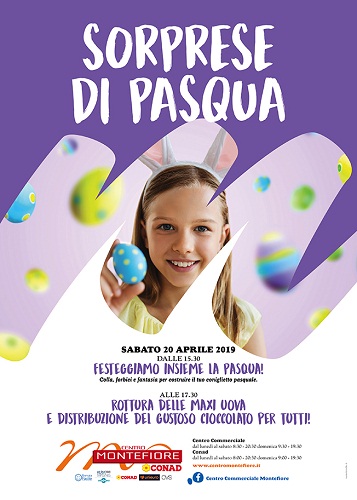 Dalle ore 15.30 i più piccoli si cimenteranno in laboratori creativi per costruire il proprio coniglietto pasquale, mentre alle ore 17.30, si potrà invece assistere alla rottura di uova giganti di cioccolato, che verranno distribuite tra tutti i clienti presenti nel Centro.