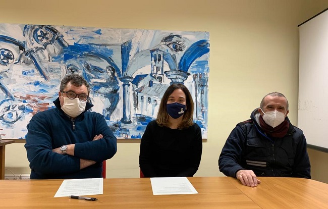 Foto: Sostegno Alimentare sottoscrizione convenzione: ass. Cristina Coletti con Caritas Centro Solidarietà e carità e Mantello