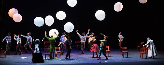 L’assenza di scene vere e proprie concentra tutta l’attenzione sulle gag comiche e le gestualità curate, ma soprattutto sulla voce e sulla musica, regine indiscusse dell’opera rossiniana. Questa assenza aiuta inoltre a sottolineare anche i lati più cinici di questo dramma buffo, di cui comunque emerge pur sempre il lato scherzoso e giocoso: le ‘trovate’ sul palcoscenico si rincorrono con naturalezza e inventiva crescente, così da non lasciare mai un momento di pausa nel gioco teatrale.