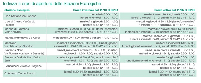 RAVENNA – Da giovedì 2 maggio scatta l’orario estivo delle stazioni ecologiche (centri di raccolta) del ravennate e della Bassa Romagna, che rimarrà in vigore fino al 30 settembre 2019.