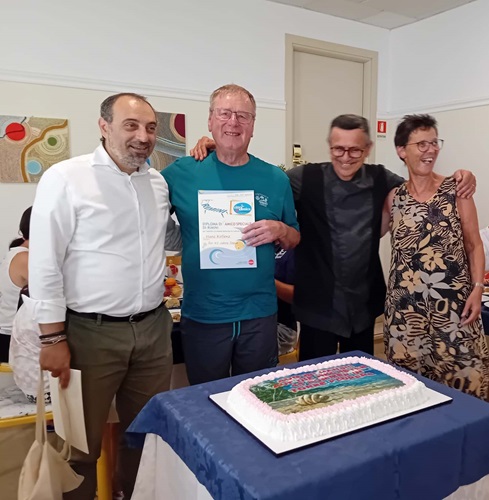 Sono 45 anni che, dall’Austria, Hans Kollenz sceglie di passare le sue estati a Torre Pedrera in compagnia della famiglia, da quest’anno allargata alla 4° generazione con l’arrivo del primo pronipote. L’hotel Aros di Torre Pedrera, dove Hans Kollenz soggiorna da 38 anni, ha voluto festeggiare con il suo ospite, oramai amico, questo traguardo e, alla presenza dell’assessore Juri Magrini, consegnare l’attestato di turista affezionato a Rimini.