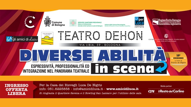 BOLOGNA – Torna al Teatro Dehon (via Libia 59) la rassegna “Diverse abilità in scena – Espressività, professionalità ed integrazione nel panorama teatrale” promossa da Gli amici di Luca Casa dei Risvegli Luca De Nigris, a cura di Fulvio De Nigris, che si è consolidata nel tempo e giunge quest’anno, al Teatro Dehon, al traguardo della 19^ edizione. Fino al 12 giugno 10 spettacoli di diverse abilità. Ingresso a offerta libera.