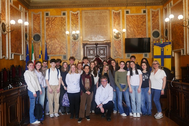 PARMA – L’assessora ai Servizi educativi Caterina Bonetti, questa mattina, nella Sala del Consiglio comunale, ha incontrato un gruppo di studentesse e studenti del liceo Ceskolipska di Praga, in visita a Parma per Erasmus+ e ospiti del Liceo Romagnosi.