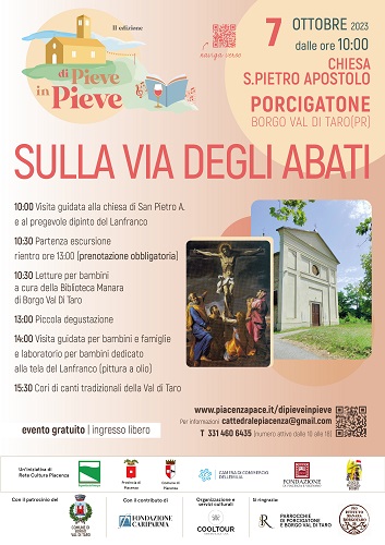 BORGO VAL DI TARO (PR) – Prosegue il viaggio di «Di Pieve in Pieve»: sabato 7 ottobre la rassegna culturale sarà ospitata presso la chiesa di San Pietro Apostolo di Porcigatone, Comune di Borgo Val di Taro (PR).