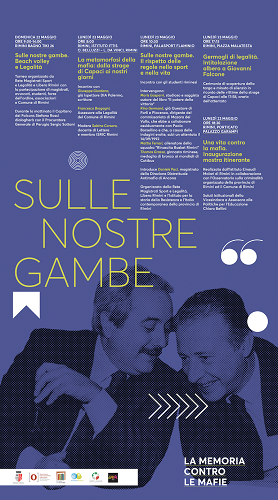 Sono due dei momenti più significativi inseriti nella rassegna di eventi denominata “Sulle nostre gambe. La memoria contro le mafie” organizzati in occasione del trentennale della strage di Capaci, dal Comune di Rimini in collaborazione con l’Osservatorio sulla criminalità organizzata della provincia di Rimini, l’Istituto per la storia della Resistenza e dell’Italia contemporanea della provincia di Rimini, l’Associazione Magistrati Sport & Legalità e Libera Rimini, le scuole superiori “Einaudi – Molari” e “Belluzzi – Da Vinci”.