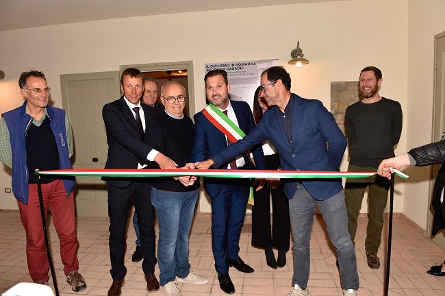 Ad inaugurare il percorso espositivo sono stati l’assessore al turismo, sport, cultura Stefano Caldari, il campione del mondo Maurizio Fondriest, Davide Cassani, nella doppia veste di presidente di APT Emilia-Romagna e CT della Nazionale Ciclismo, Secondo Casadei, il giornalista sportivo Marco Pastonesi e i curatori della mostra Laura D’Amico e Inserire Floppino.