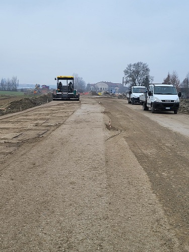 Relativamente allo stato d’attuazione del lotto in fase di costruzione si rappresenta nel dettaglio che i lavori di realizzazione dei sottofondi sono in corso e verranno completati entro 10 giorni. Contemporaneamente sono in corso la sistemazione dei canali irrigui, le canalizzazioni dell’impianto di illuminazione e l’interramento della linea telefonica. Non appena le temperature lo consentiranno si potranno eseguire le bitumature di base, che saranno completate in circa 2 settimane. Seguiranno infine le previste opere di finitura e mitigazione ambientale.