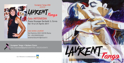 Mercoledì 19 aprile alla sala Artemedia del comune di Cervia e in piazza Garibaldi debutta “Tango”, la mostra di pittura dell’artista argentina Ana Maria Laurent dedicata al tango, alla passione, alla seduzione, alle tipiche “miradas” e alla magia del famoso “abrazo” del tango.