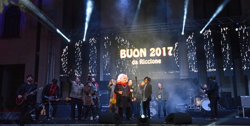 Ceccarini era quasi del tutto pieno, per poi arrivare al sold out con l’ingresso sul palco di Platinette alle 23.45, che, insieme ai Dear Jack, ai riccionesi 78Bit – che hanno aperto la serata – e alla band dei Settesotto, ha scandito il count down fino allo spettacolo pirotecnico con i fuochi sparati dalla spiaggia.