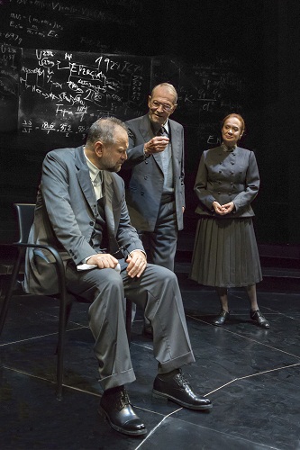 In un luogo che ricorda un’aula di fisica, immersi in un’atmosfera quasi irreale, tre persone, due uomini e una donna, parlano di cose successe in un lontano passato, cose avvenute tanto tempo prima, quando tutti e tre erano ancora vivi. Sono Niels Bohr (Orsini), sua moglie Margrethe (Lojodice) e Werner Karl Heisenberg (Popolizio). Il loro tentativo è di chiarire che cosa avvenne nel lontano 1941 a Copenaghen quando improvvisamente il fisico tedesco Heisenberg fece visita al suo maestro Bohr in una Danimarca occupata dai nazisti. Entrambi coinvolti nella ricerca scientifica, ma su fronti opposti, probabilmente vicini ad un traguardo che avrebbe portato alla bomba atomica, i due scienziati ebbero una conversazione nel giardino della casa di Bohr; il soggetto di quella conversazione ancora oggi resta un mistero e per risolverlo la Storia ha avanzato svariate ipotesi. L’asse portante attorno al quale ruota lo spettacolo è dunque il motivo per cui l’allievo andò a Copenaghen a trovare il suo maestro. Essendo Heisenberg a capo del programma nucleare militare tedesco, voleva, in nome della vecchia amicizia, offrire a Bohr, che era mezzo ebreo, l’appoggio politico della Gestapo in cambio di qualche segreto? O al contrario, essendo mosso da scrupoli morali, anche se tormentato dalle conseguenze che sarebbero potute ricadere sul destino della sua patria martoriata e che lui amava pur non essendo nazista, tentava di rallentare il programma tedesco fornendo a Bohr, che era schierato con gli alleati, informazioni sull’applicazione dei fondamenti teorici della fissione? Su questi presupposti l’autore dà vita a un appassionante groviglio in cui i piani temporali si sovrappongono, dando un valore universale alle questioni poste dai protagonisti. Le diverse ipotesi fatte all’epoca vengono qui enunciate una dopo l’altra e quindi vengono messi in scena diversi incontri tra i due fisici, con diversi andamenti. Viene quindi a tradursi metaforicamente, come struttura portante dell’impianto drammaturgico, quel Principio di Indeterminazione e di Complementarietà pronunciati molte volte nella pièce e così determinanti per l’elaborazione della teoria della relatività ad opera di Einstein. Non è possibile una sola verità oppure una sintesi efficace delle diverse verità perché una verità è semplicemente un punto di vista, il punto di vista di chi l’ha enunciata. Tutto è umano, niente è assoluto. Si possono avere solamente risposte indeterminate, e quindi la somma degli scenari possibili e ciò vale anche per quell’incontro tra i due fisici. Il Novecento, così come la vita umana, è fatto di tante zone grigie, di tanto silenzio, ma finché esisterà l’uomo si cercherà sempre, in mezzo al vuoto che ci circonda e alla polvere sollevata, la traccia rarefatta di una particella di chiarezza e di verità che, comunque, ci salverà.