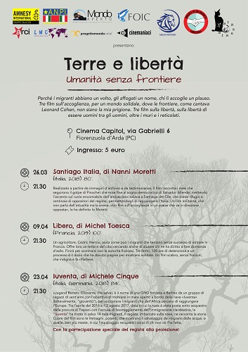 5 euro l’ingresso al Cinema Capitol di Via Gabrielli a Fiorenzuola, dove verranno proiettati i tre film: SANTIAGO, ITALIA di Nanni Moretti, il 26 marzo. Realizzato a partire da immagini d’archivio e da testimonianze, il film racconta i mesi che seguirono il golpe di Pinochet che mise fine al sogno democratico di Salvador Allende, mettendo l’accento sul ruolo encomiabile dell’ambasciata italiana a Santiago del Cile, che diede rifugio a centinaia di oppositori del regime, permettendogli di raggiungere l’Italia. Un film militante, che non parla dell’attualità ma la evoca. «Un film sull’accoglienza in un paese che va in direzione opposta», lo ha definito lo Moretti.