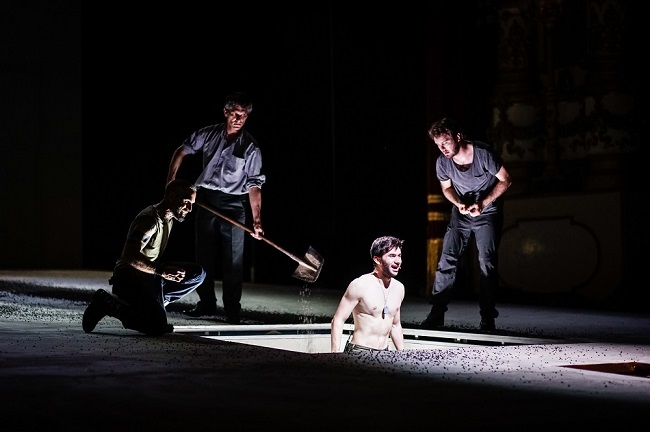 Gli attori sono alle prese con un gioco di ruoli tragici, che li fa continuamente passare dal “dentro” al “fuori” della messinscena, rendendo sottile il confine tra il piano della realtà e quello della finzione e svelando l’insensatezza della guerra e della violenza.