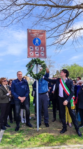 RIMINI – Si è svolta ieri mattina a Corpolò la cerimonia di intitolazione a Clelia Granci del parco situato tra via Gradizza e via Belvedere. Un momento di commemorazione molto partecipato, a cui erano presenti, oltre all’assessore Mattia Morolli, anche la consigliera comunale Manuela Guaitoli, i figli di Clelia Granci, Gianluca e Michele Lisi, i parenti e tanti amici e mamme che Clelia ha aiutato a partorire.