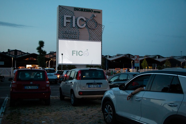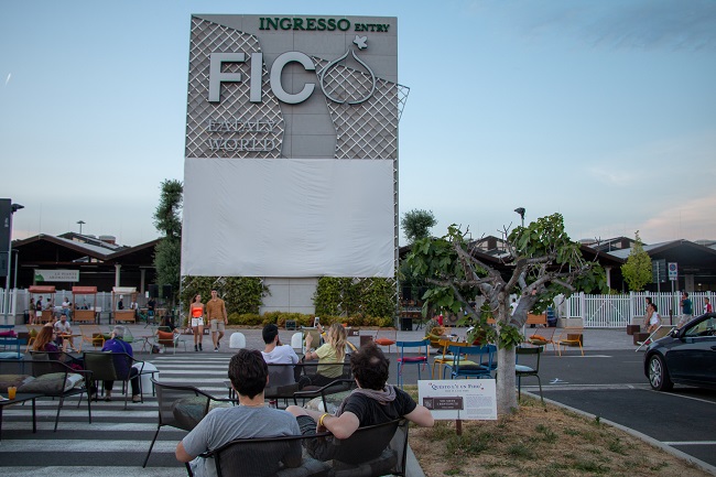 Venerdì, a partire dalle ore 20.00, si potrà raggiungere l’area designata del parcheggio P1 di FICO, registrarsi ritirando il voucher da 15€ che comprende il biglietto del cinema e il menu, e raggiungere la postazione assegnata. Il menu degustazione comprende un panino gourmet e un drink da ordinare e ritirare direttamente ai chioschi posizionati proprio sotto al mega schermo. Tre le proposte gustosissime fra cui scegliere: il cono street food di Suino Nero Madeo con polpettine miste classiche, alla Nduja e al formaggio, la rosetta con Mortadella Bologna IGP, ricotta, rucola e pomodorini e la ciabattina con Granfiocco Cotto al Miele, zucchine grigliate e maionese all’erba cipollina dell’Osteria del Culatello Antica Ardenga, accompagnate dalla birra Poretti, dai vini di Fontanafredda e dai cocktail del Fantini Club.