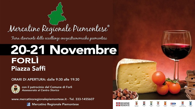 FORLÌ – Il 20 e 21 novembre dalle 9.30 alle 19.30 torna in piazza Saffi la fiera itinerante delle eccellenze enogastronomiche piemontesi, patrocinata dal Comune di Forlì, assessorato al centro storico.