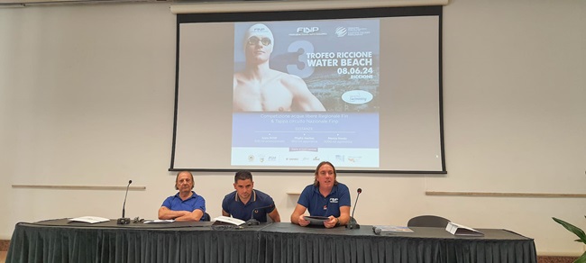 RICCIONE (RN) – Sabato 8 giugno nella spiaggia 7 si svolge “Riccione Trofeo Water Beach”, il grande appuntamento di nuoto presentato ieri dal delegato regionale Emilia-Romagna, Ilario Battaglia, in collaborazione con la Federazione Italiana Nuoto-Comitato Emilia-Romagna e la Fin Salvamento sezione Riccione/Rimini, e il sostegno del Comune di Riccione.