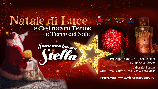 CASTROCARO TERME E TERRA DEL SOLE (FC) – Sabato 5 dicembre il Comune di Castrocaro Terme e Terra del Sole si illuminerà a festa con l’accensione delle luminarie e come da tradizione si tratterà di un momento magico che inaugurerà ufficialmente l’inizio del periodo natalizio. Per la gioia dei più piccoli e delle loro famiglie, viale Marconi si trasformerà nel “Viale della Cometa e come da tradizione verranno accesi gli alberi di Natale nelle piazze principali cittadine, assieme al progetto di proiezioni curato da Mauro Turchi.