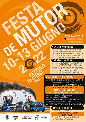 RUSSI (RA) – Anche quest’anno l’imperdibile appuntamento a Pezzolo di Russi con la “Festa de Mutor “, quattro giornate in cui si celebrano gli sport motoristici con esibizioni dedicate alle due e alle quattro ruote.