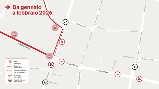 Con la riapertura di via Indipendenza alle spalle, si intensificano le attività su via Marconi, dove il cantiere si prepara ad essere riallestito continuando a interessare l’incrocio con Ugo Bassi e San Felice, ma in un nuovo assetto. Le operazioni inizieranno il 12 gennaio con lo smantellamento delle recinzioni su Ugo Bassi, senza modifiche alla circolazione, che resterà a senso unico verso il centro. Anche lo spostamento del cantiere di via Marconi dal lato est a quello ovest non comporterà alterazioni alla viabilità, salvo restringimenti di carreggiata. Lo stesso vale per i lavori su via delle Lame, il cui trasferimento sul lato opposto è però calendarizzato dalla settimana successiva.