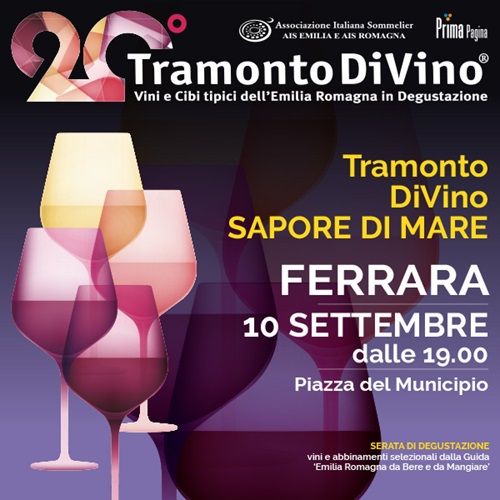 LA SCHEDA a cura degli organizzatori – Tramonto DiVino il tour del gusto dell’Emilia Romagna torna a Ferrara mercoledì 10 settembre, a partire dalle 19.00 nella storica sede di Piazza Municipio per una tappa al ‘Sapore di Mare’, co-organizzata con la Strada dei Vini e dei Sapori e il Comune di Ferrara.