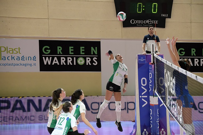 SASSUOLO (MO) – Neanche il tempo di godersi la bella ma sudata vittoria contro Altino e – soprattutto – il merito accesso ai Play Off, che la Green Warriors deve già voltare pagina: il prossimo turno di Regular Season – il decimo e penultimo del girone di ritorno – è infatti alle porte. Domenica infatti Capitan Civitico e compagne saranno di scena in Romagna, sul campo dell’Olimpia Teodora Ravenna. Fischio di inizio come di consueto alle 17.00 con diretta streaming sul canale Youtube di Volleyball World.