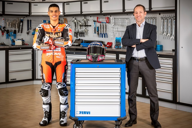 VIGNOLA (MO) – FERVI, noto marchio di utensileria meccanica della motor valley emiliana, torna in pista e non sarà solo presente nei box o sulla livrea della Panigale V4 R del team Aruba.it Racing – Ducati, ma anche sulla tuta del giovane promettente pilota riminese numero 21, già vincitore della gara ad Aragon nel mondiale 2020, allora in sella ad una moto del team satellite.
