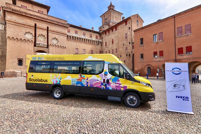 Gli scuolabus elettrici sono stati allestisti su telai IVECO A50 “POP” SM e IVECO 70 INDCAR “MOBI” SM ed hanno un’autonomia di circa 150 km. La ditta fornitrice è la Maresca e Fiorentino (aggiudicatrice dell’appalto e concessionaria Iveco bus per l’Emilia Romagna, Marche, Toscana, Umbria e per San Marino).